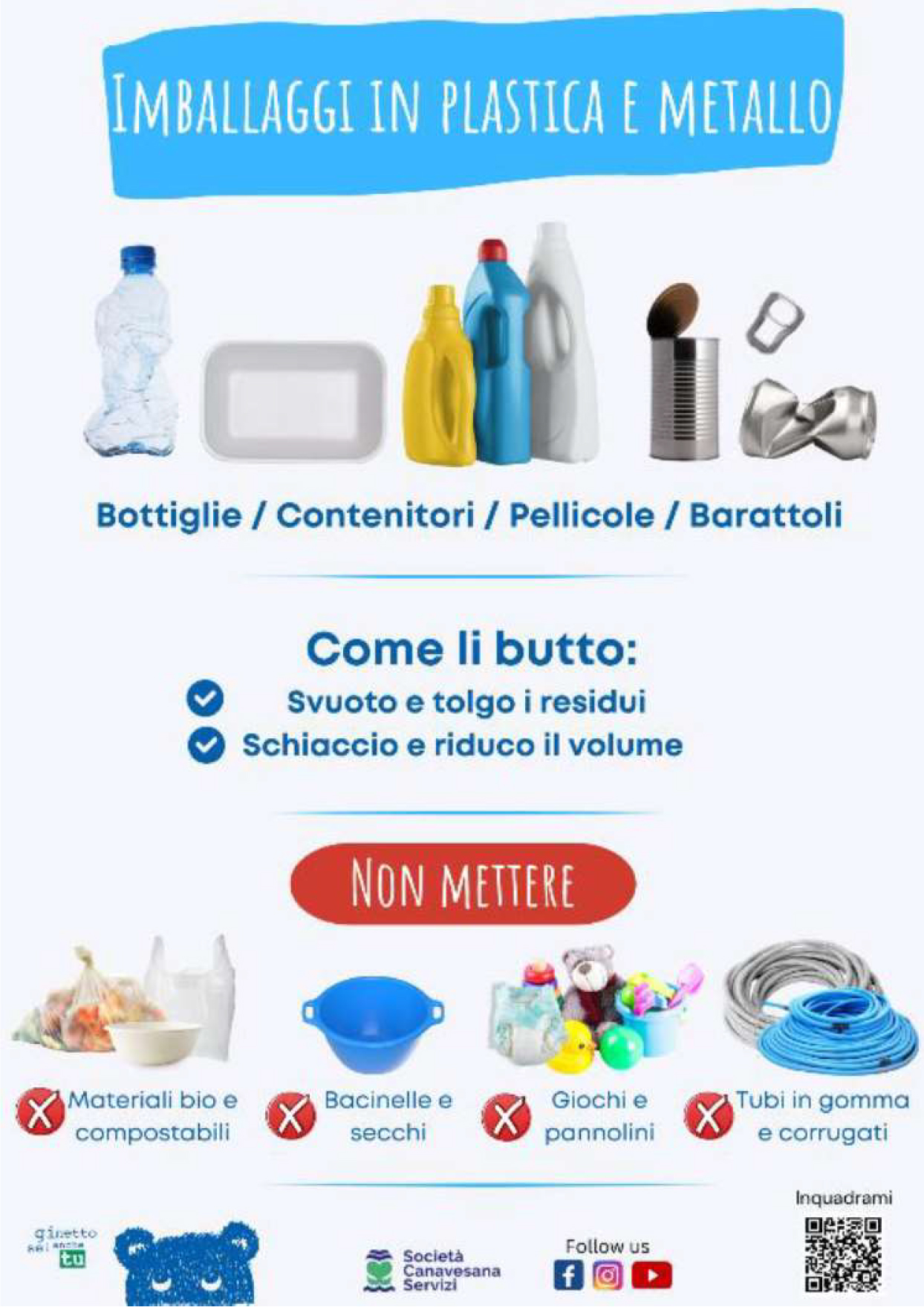 Dagli ultimi dati mensili forniti da SCS Società Canavesana Servizi emerge che, globalmente sul territorio del consorzio, le impurità presenti nella raccolta della plastica e metallo (campane blu) risultano superiori al limite consentito (27% di impurità rispetto il limite massimo del 22%).