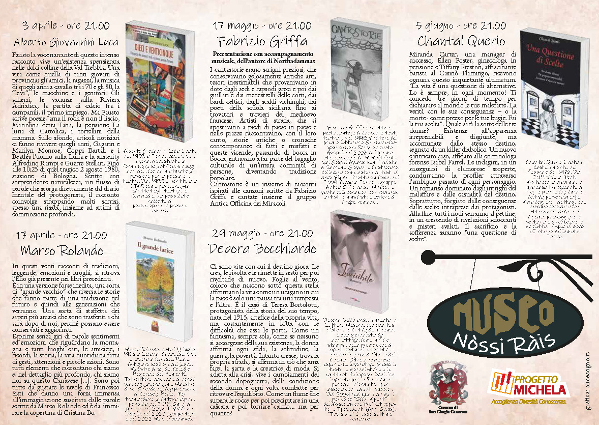 L'Associazione Progetto Michela organizza, per la stagione 2025, un ciclo di presentazioni letterarie ed incontri con gli autori presso il Museo "Nòssi Ràis" di San Giorgio Canavese via Campeggio n.8