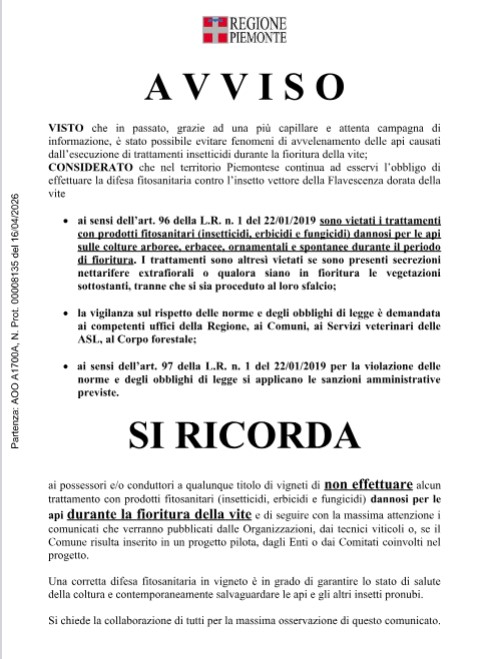 Si allegano le locandine informative e l'avviso della Regione Piemonte, e si rimanda al Sito della Regione Piemonte per ulteriori approfondimenti. al seguente link: https://www.regione.piemonte.it/web/temi/agricoltura/servizi-fitosanitari-pan/lotte-obbligatorie-flavescenza-dorata