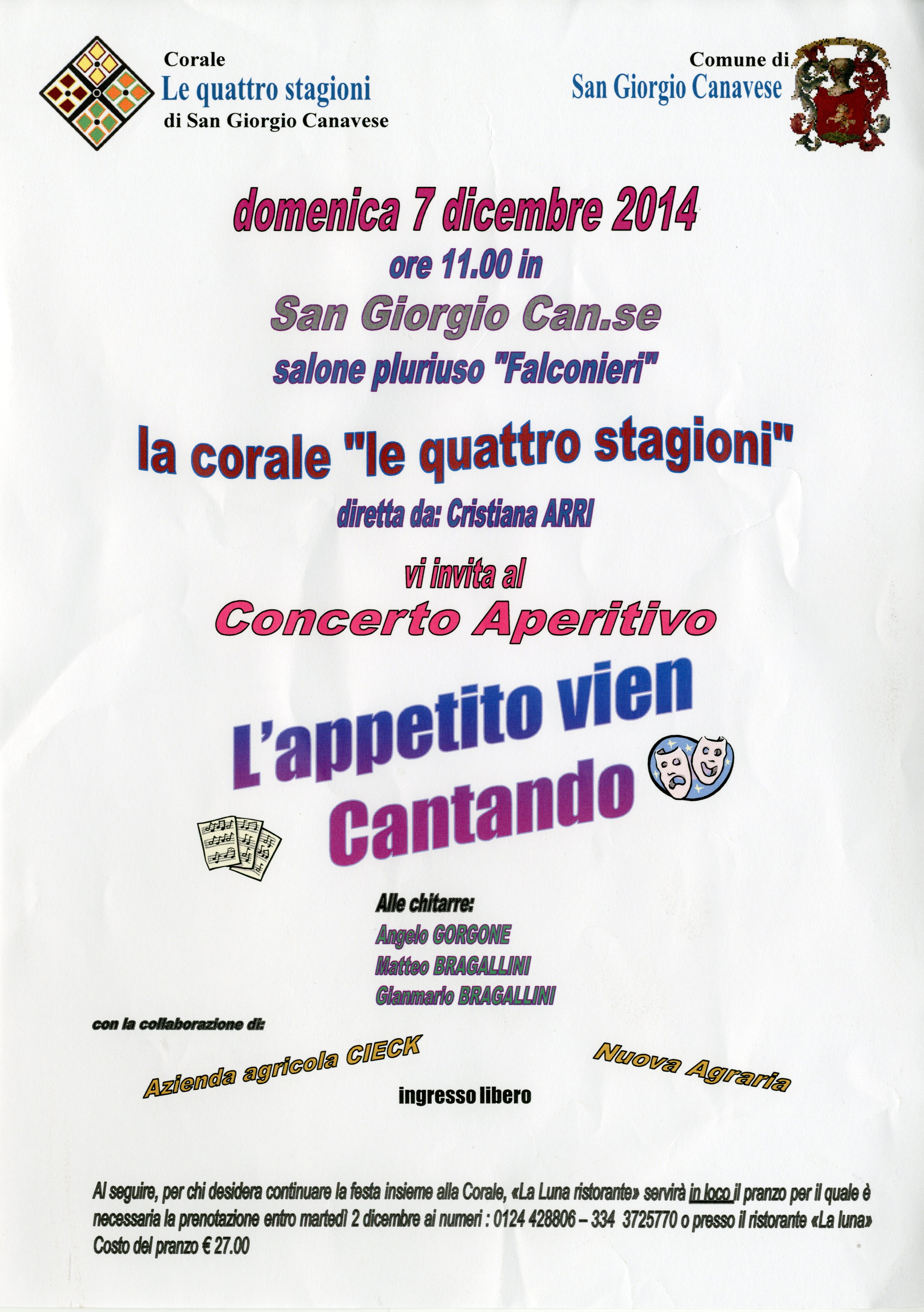 DOMENICA 7 DICEMBRE 2014, ore 11 SAN GIORGIO CANAVESE, Salone pluriuso "Falconieri" (via P. Boggio 13) - Ingresso libero