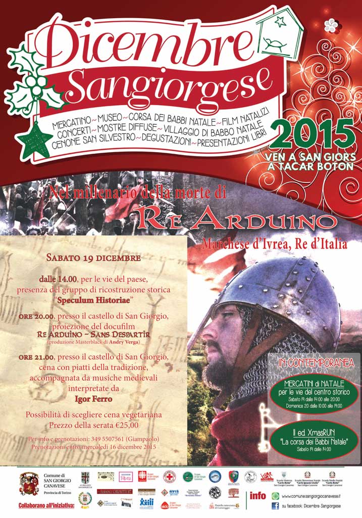 In occasione del Dicembre Sangiorgese ed in contemporanea con i Mercatini Natalizi per le vie del centro storico e il passaggio della XMasRUN "La corsa dei Babbi Natale" sarà possibile osservare le ricostruzioni storiche medioevali del gruppo "Speculum Historiae", visionare il docufilm "Re Arduino - Sans despartir".