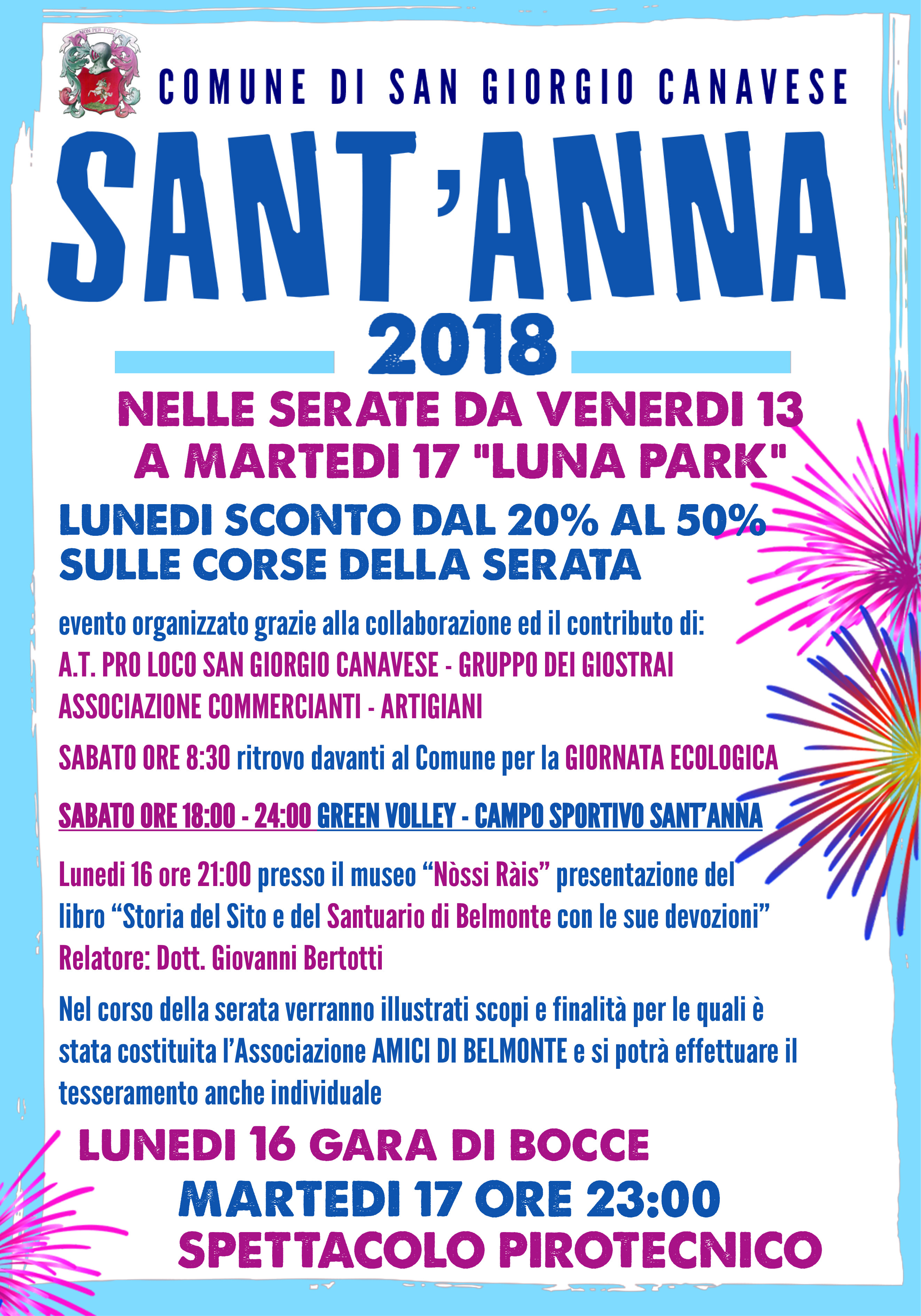 Da venerdì 13 luglio a martedì 17 luglio festa di Sant'Anna a San Giorgio Canavese con LUNA PARK presso campo sportivo di strada per Ozegna.