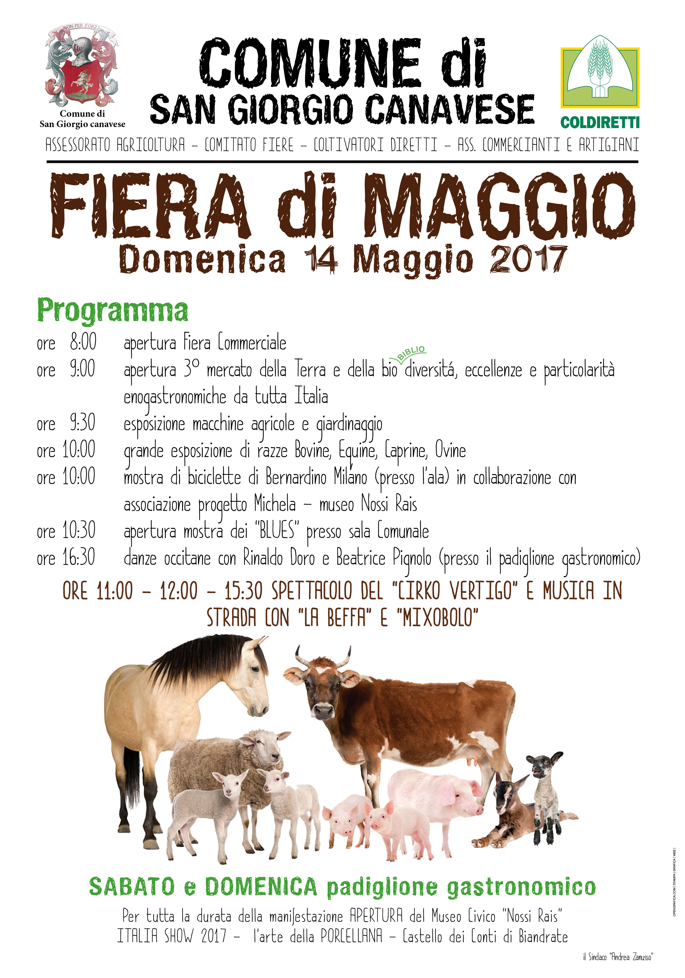 Inserita nel più ampio contesto del MERCATO DELLA TERRA e delle BIODIVERSITA' (che si terrà a San Giorgio il 13 e il 14 maggio) si allega il programma della FIERA di MAGGIO di domenica 14 maggio.