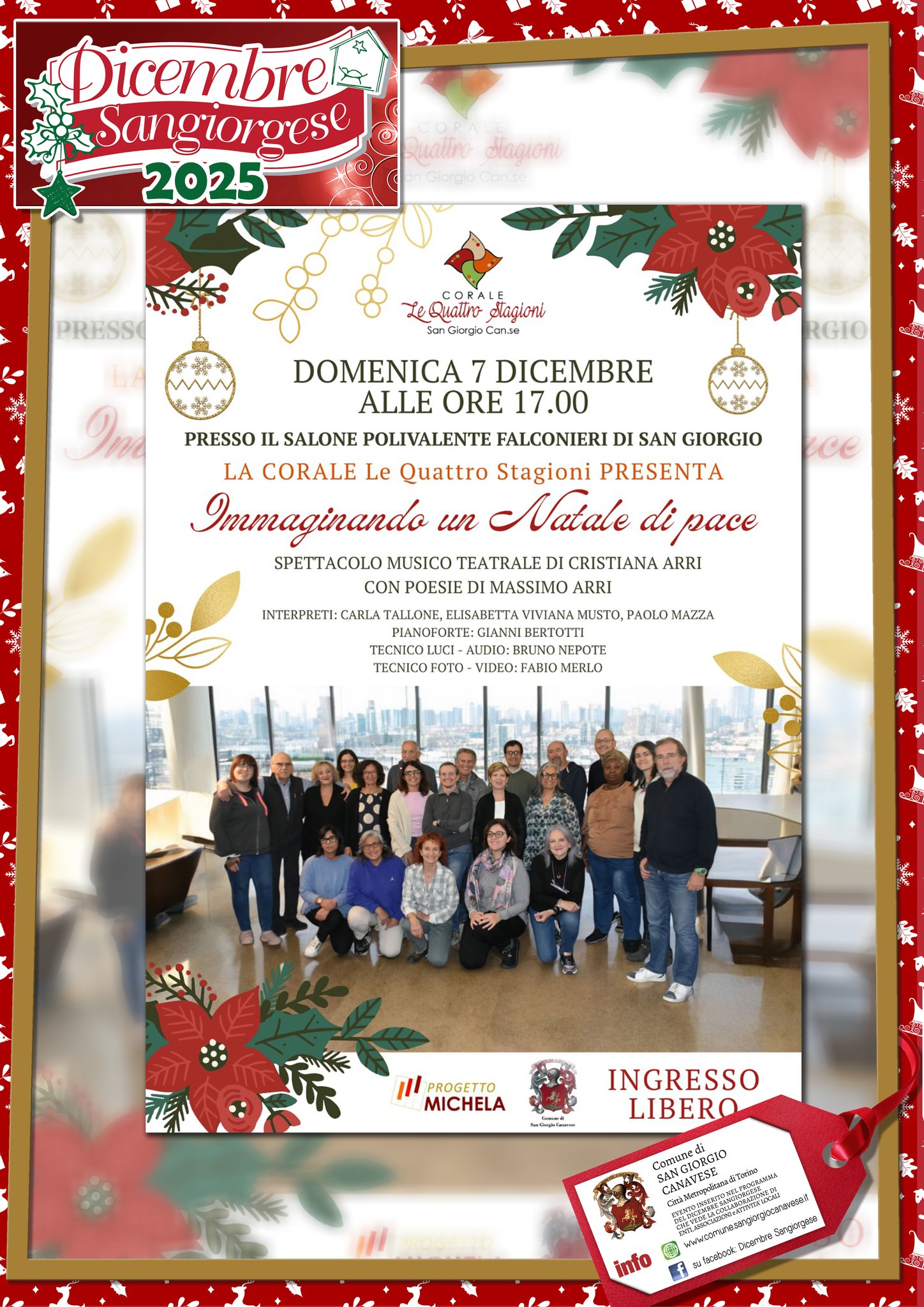 Domenica 07 dicembre alle ore 17:00, La Corale LE QUATTRO STAGIONI è lieta di presentare lo spettacolo teatrale "Immaginando un Natale di Pace" presso il Salone Falconieri di San Giorgio Canavese.
