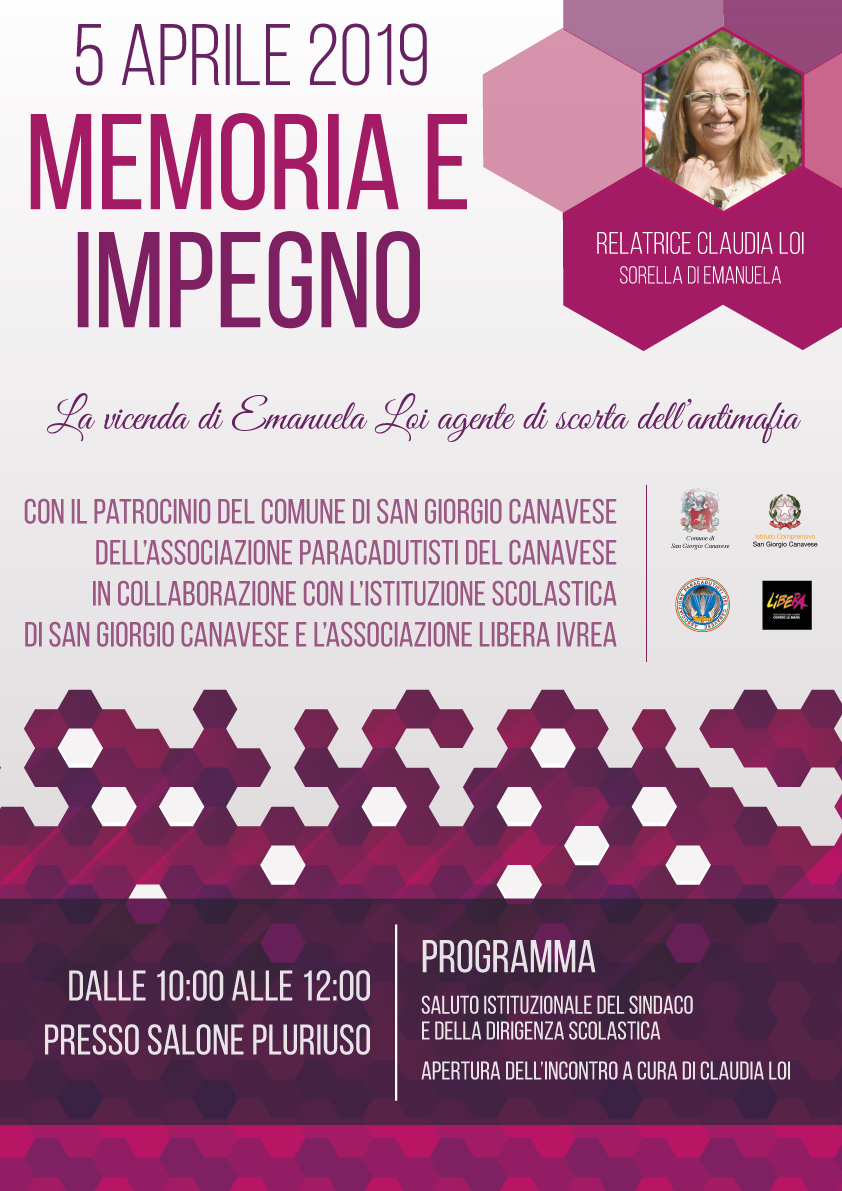 L'evento, organizzato in collaborazione con L'Associazione Libera Ivrea e la Direzione Didattica dell'Istituto Comprensivo di San Giorgio Canavese e con il patrocinio del Comune di San Giorgio Canavese e dell'Associazione Paracadutisti del Canavese, si terrà venerdi 5 aprile p.v. dalle ore 10:00 alle ore 12:00 presso il salone Pluriuso di San Giorgio Canavese.