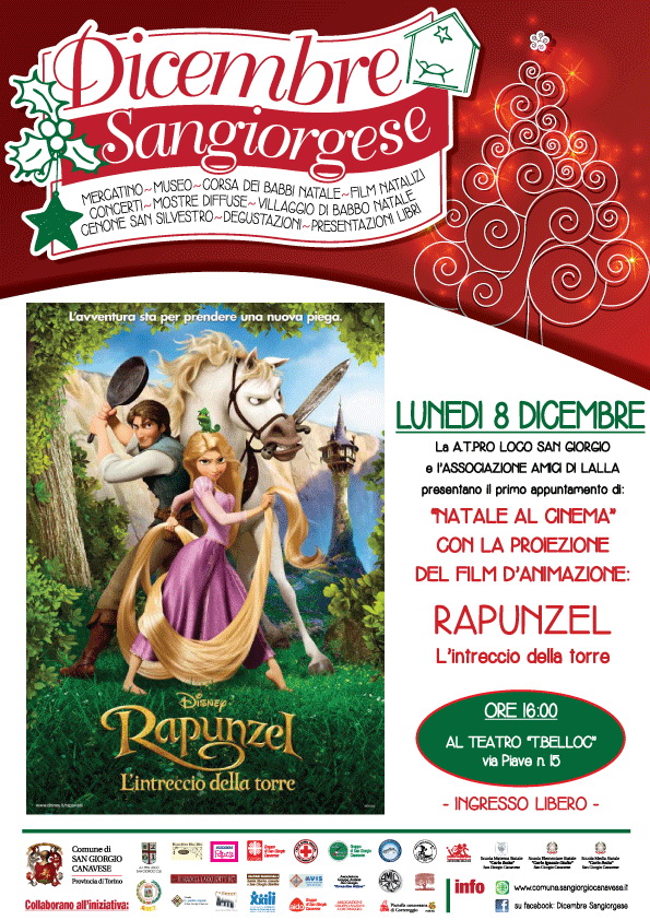 A.T. Pro Loco e Ass. Amici di Lalla LUNEDI 8 DICEMBRE ore 16:00 presentano il primo appuntamento di "NATALE AL CINEMA" con la proiezione del film d'animazione: RAPUNZEL - L'intreccio della torre