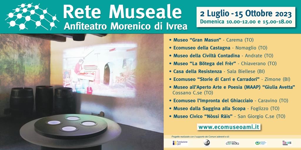 La Rete Museale Anfiteatro Morenico Ivrea (AMI) è un'iniziativa interprovinciale, innovativa, nata nel 2011 con l'intento di valorizzare i siti museali presenti sul territorio attraverso una duratura azione promozionale, volta a farli conoscere come parti di un sistema rappresentativo della cultura e delle tradizioni del territorio. Nello stesso tempo intende garantire un programma d’apertura certo e una soddisfacente accoglienza dei visitatori attraverso l’impiego di giovani che, dopo un programma di formazione per operatori museali, sono coinvolti nella gestione e apertura dei musei nei weekend della stagione estiva.