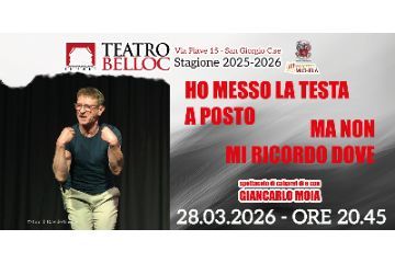 Sabato 28 marzo, il Teatro Belloc di San Giorgio canavese, ospiterà lo spettacolo di cabaret di Giancarlo Moia "Ho messo la testa a posto ma non mi ricordo dove".