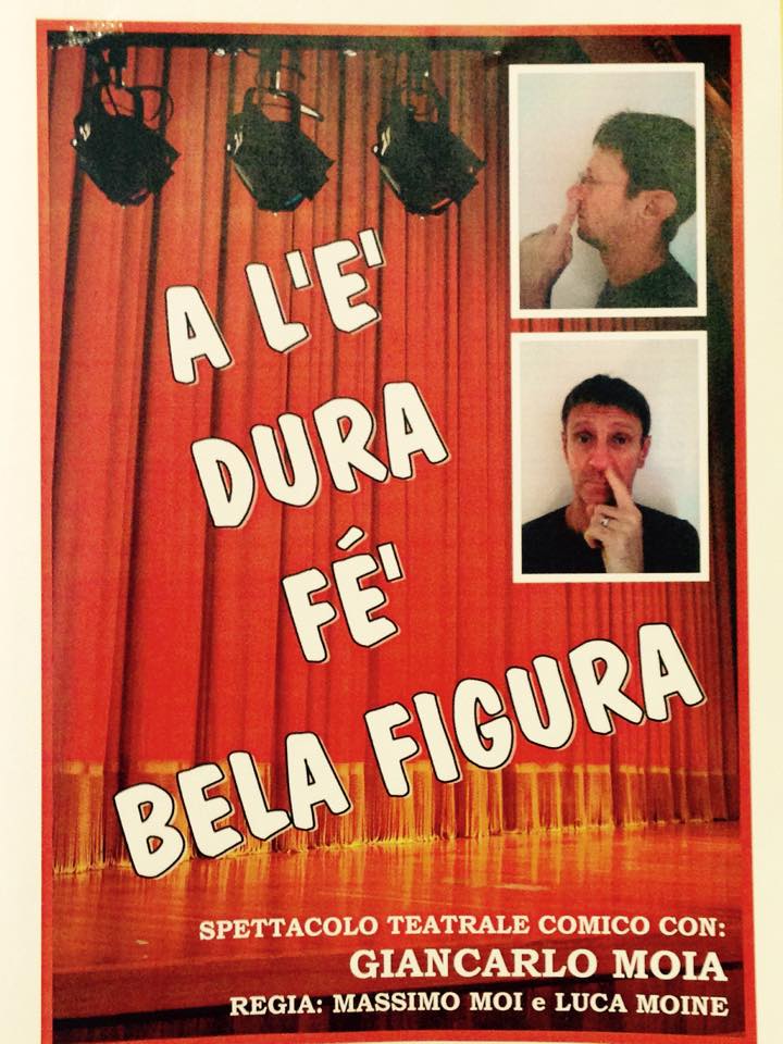 La Pro Loco organizza presso il Teatro Comunale "T.Belloc" di via Piave lo spettacolo teatrale comico "A l'è dura fè' bela figura" con Giancarlo MOIA regia di Massimo MOI e Luca MOINE. Sabato sera ore 21:00